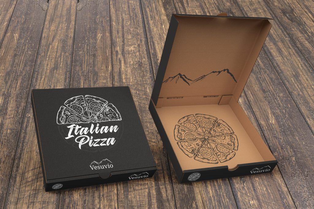 Ich habe mich für das Restaurant Vesuvio aus Hildesheim entschieden und einen zum Logo passenden Karton gestaltet.