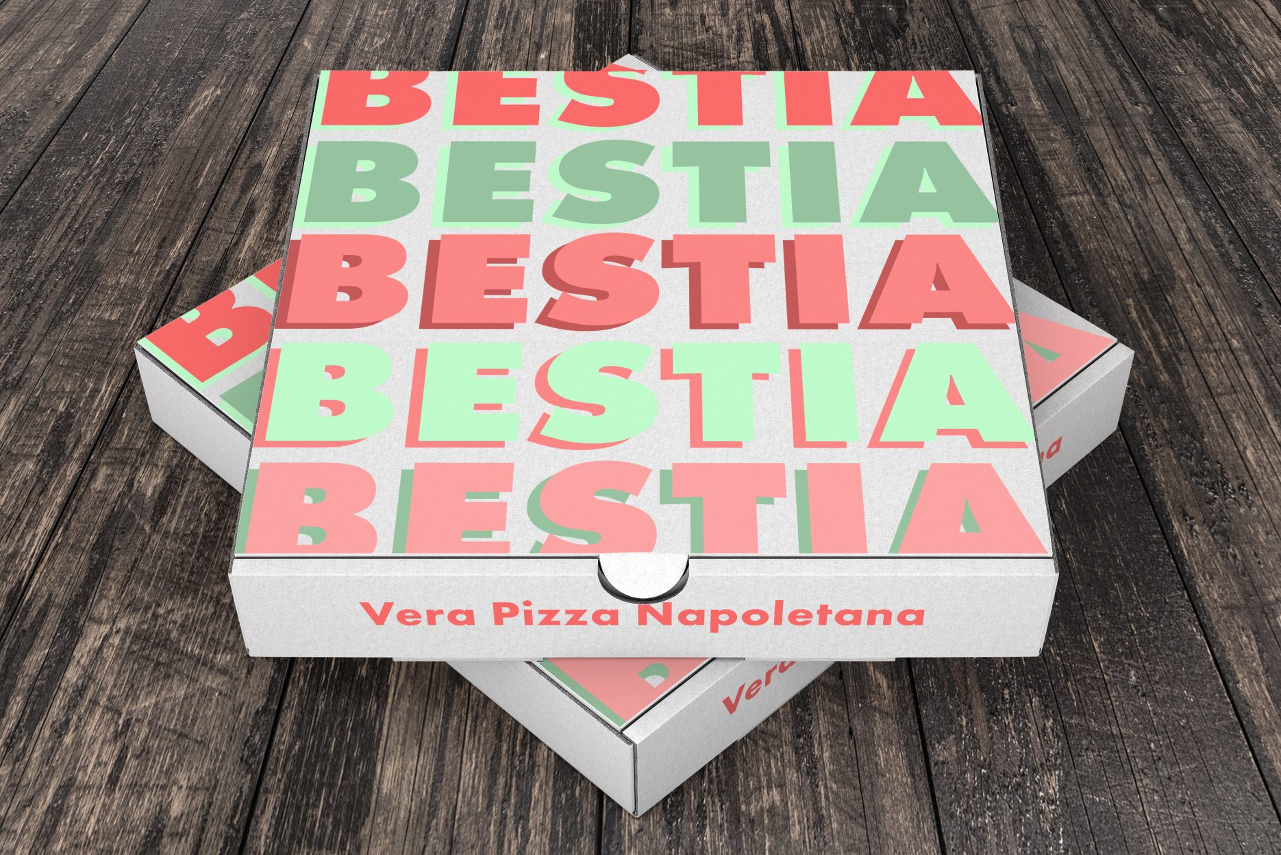 Den ersten Pizzakarton wollte ich rein typografisch gestalten. Die Schrift sollte modern aussehen aber auch auf die italienische Pizza schließen lassen. Deswegen habe ich mich für die Farben der italienischen Flagge entschieden.
