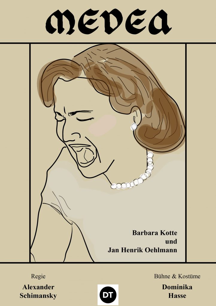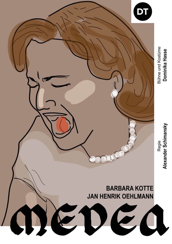 Zwar blieb ich bei einer Plakatvariante in dem eine Frau dargestellt wird, jedoch wollte ich einen – für mich – neuen Stil ausprobieren. Das Design ist plakativ, einfach und gleicht eher einer Strichgrafik. Die Farben sind eher schlicht gehalten, wobei das Rot im Mund, die weiße Perlenkette sowie die Haare sehr auffallen.