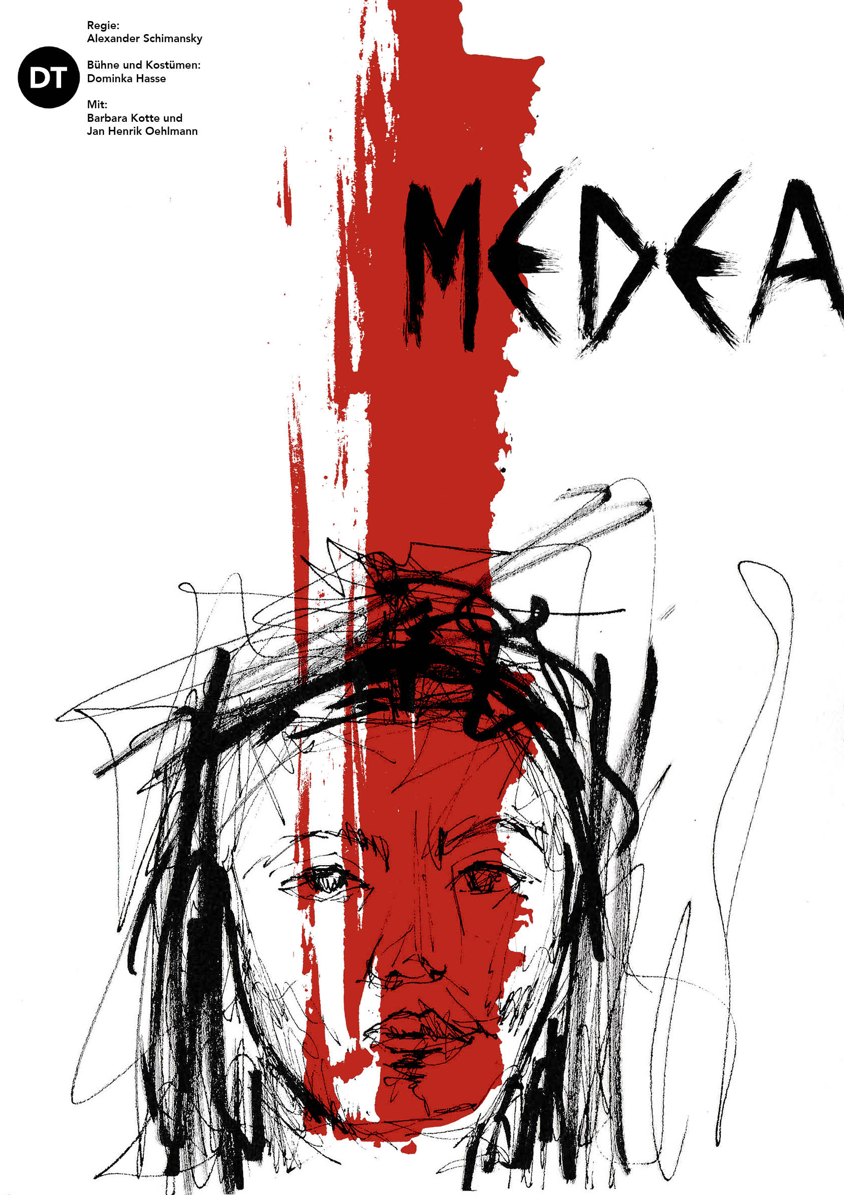Durch die schnelle Bewegung der Stiftführung wird Dramatik und Aggression erzeugt. Der dicke rote Pinselstrich symbolisiert Blut, welches durch das ganze Gesicht der Frau geht, womit Brutalität und Wut hervorgerufen werden soll. Im Blick der Frau erkennt man Leere und Kälte, was die Brutalität verstärkt.