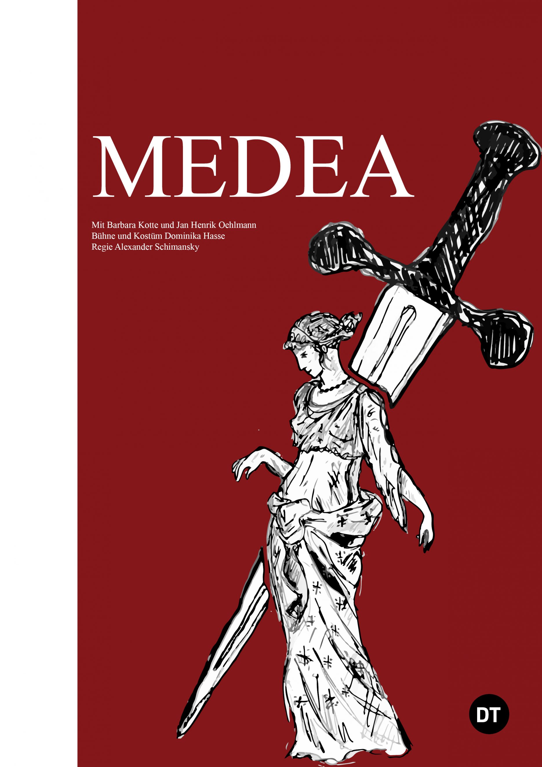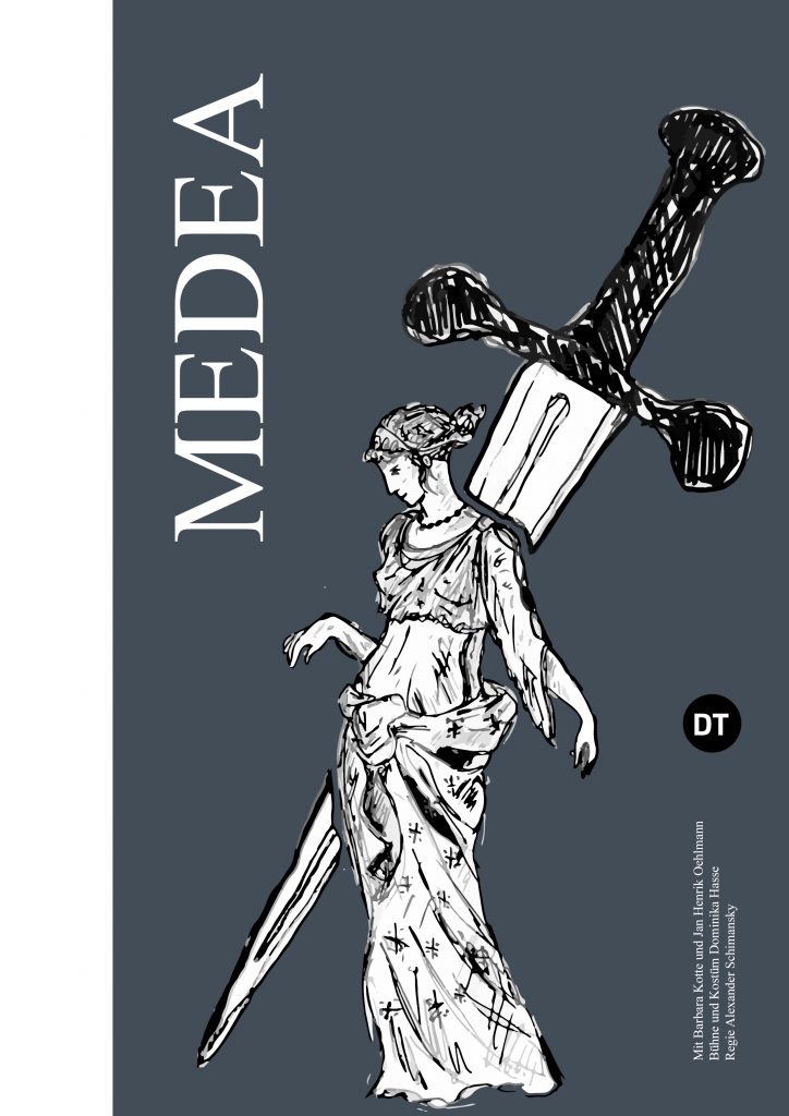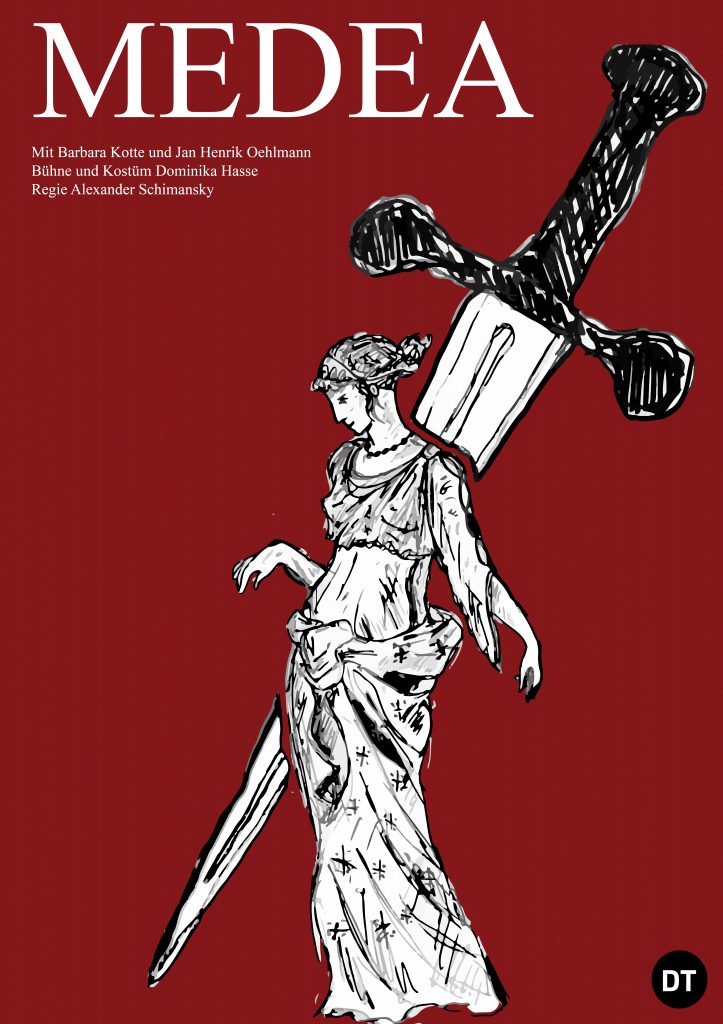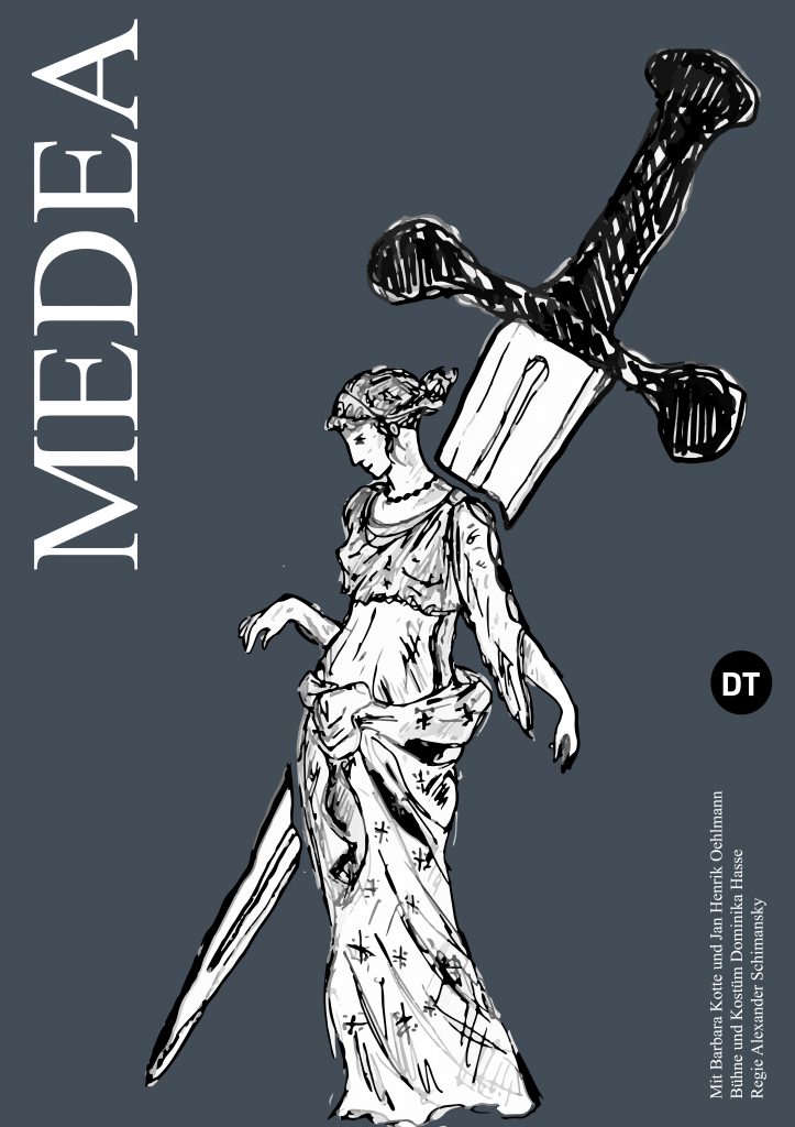 Die zweite Aufgabe ist, für das Deutsche Theater in Berlin, ein Plakat plus ein Libretto zu dem Theaterstück Medea zu gestalten. Ich wollte wieder illustrativ arbeiten.