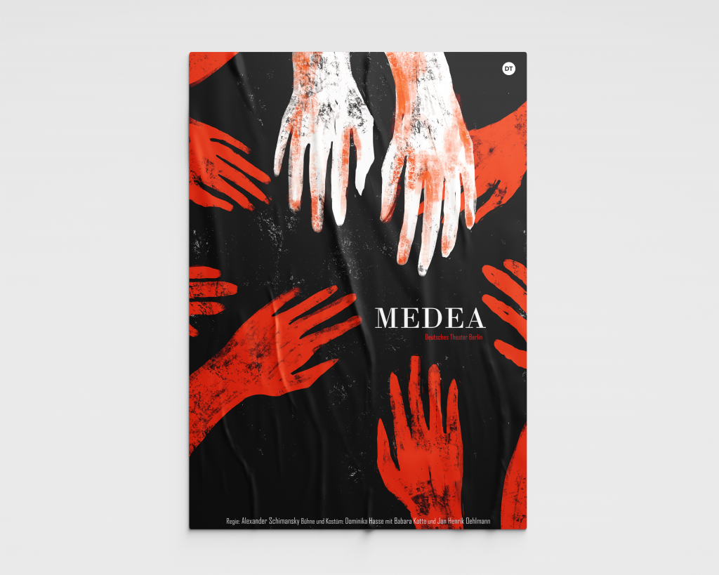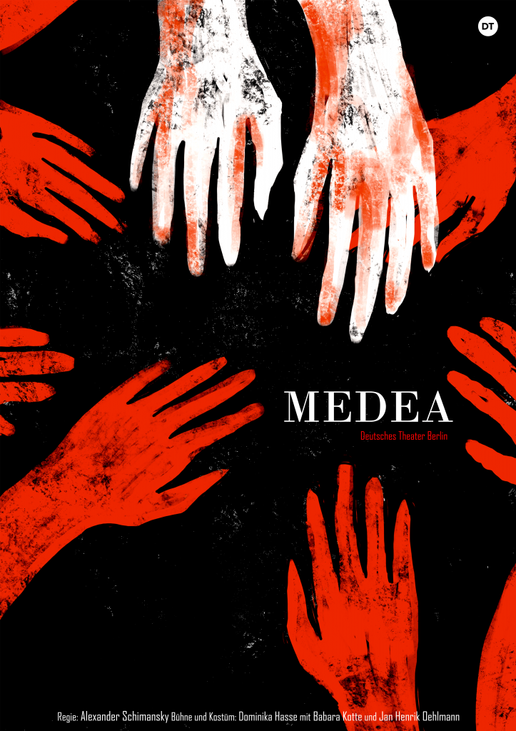 Durch Medeas Hände sind viele Menschen gestorben, ihren eigenen Bruder, die neue Gemahlin Ihres Mannes und sogar die eigenen Kinder. Das Blut vieler Menschen klebt an ihren Händen. Die Farben weiß, rot und schwarz schaffen ein düsteres Szenario, es drückt Gewalt, Wut und Vergeltung aus.