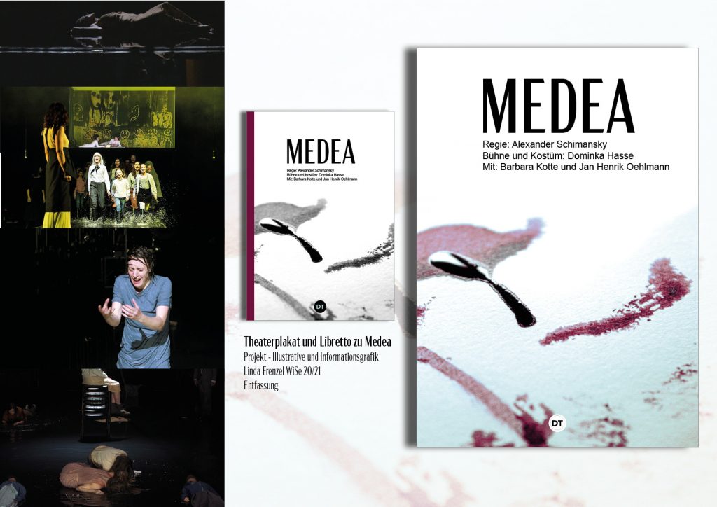 Meine Schriftwahl für Medea fällt auf Acme Gothic Compress Regular. Auf der Website des Deutschen Theaters wird Arial Regular verwendet, diese ich dann auch für den weiteren Text verwendet habe.