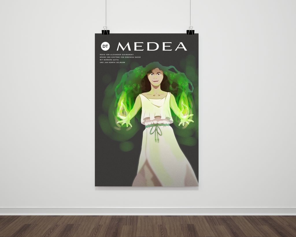 Nach einigen Recherchen bezüglich der Geschichte rund um Medea fand ich insbesondere ihre Fähigkeiten als Magierin sehr interessant. Diese Fertigkeiten und ihr krankhaftes Verhalten habe ich in meiner Illustration darstellen wollen.