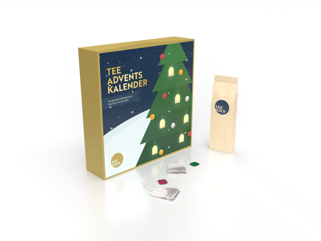 Schließlich habe ich mich für einen Adventskalender für Teeliebhaber entschieden. Enthalten 24 verschiedenste Teesorten, 1-23 als Teebeutel. Im größten und letzten Türchen bekommt man dann ein kleines Tütchen mit losem Tee inklusive Teezange.
