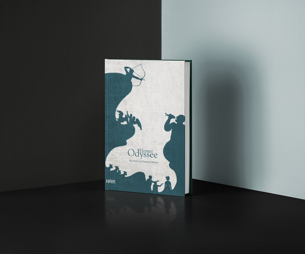 Meine Idee war es, möglichst viel Inhalt sehr reduziert darzustellen. Ich habe verschiedene Charaktere aus dem Buch in die Gestaltung mit einbezogen. Die Basis ist das zentrale Thema Meer, welches sich um den Buchumschlag verteilt. Silhouetten, die aus dem Wasser ragen, erzählen einen Teil der Geschichte.
