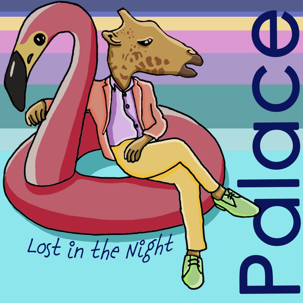 Ich habe mich für das Album Lost in the Night von Palace entschieden. Die Lieder erinnern mich sehr an Sommer, Sonne und Strand, deshalb wollte ich ein farbenfrohes Cover gestalten. Auf dem Cover bedindet sich der Bandname, der Albumtitel und eine illustation. Für die Illustation habe ich zuerst eine Collage gemacht und diese dann digital Illustriert. Der Hintergund stellt das Meer bei Sonnenuntergang da. Die Schriften orientieren sich an den von der Band verwendeten Schriftenarten.