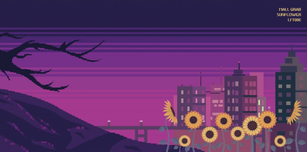 Ich habe mich für den Track Sunflower von Mallgrab entschieden. Das Cover vereint die Silhouette einer lebendigen Großestadt bei Nacht mit der ruhigen Ausstrahlung der Natur. Passend zum Sound ist es in einem spielerischen Bitmapstil gehalten.
