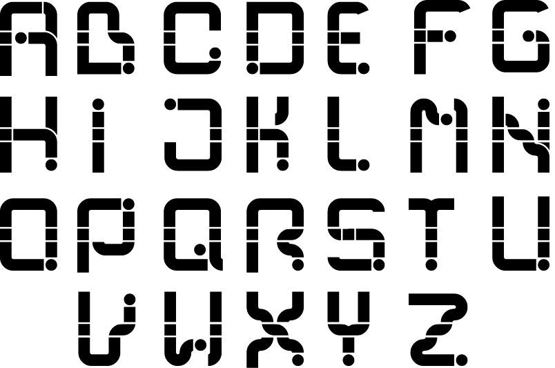 Für die Letzte Aufgabe, der Konstruierte Font habe ich mir zu Beginn erstmal Gedanken gemacht wie man einen Font konstruiert. Ich wollte diesen Font aus einigen Simplen Formen erstellen, wie Kreise, Vierecke und Linien. Beim konstruieren dieser Schrift ist mir schnell aufgefallen, dass ein Abgerundeter Stil besser zu den Buchstaben passt als ein Blockiger, eckiger Stil. Zudem habe ich mich dazu entschieden diese Schrift Abstrakt zu gestallten. Die Punkte und die Striche durch die Mitte geben dieser Abstrakten Schrift die nötige Regulierung damit sie zusammengehörig aussieht.