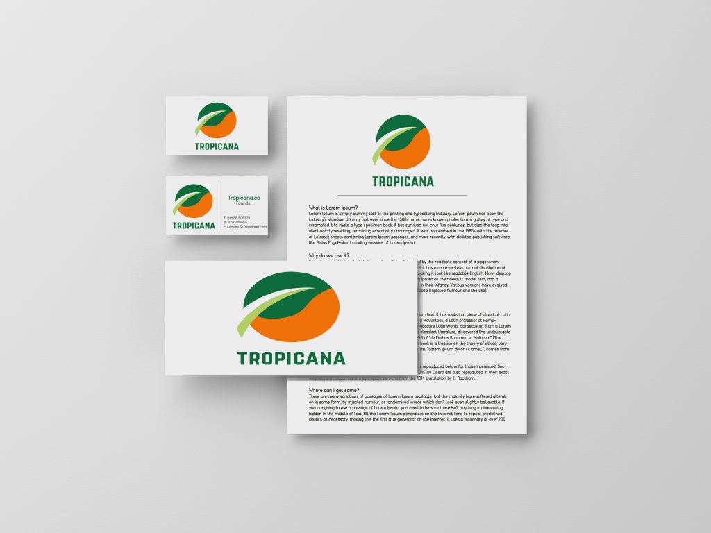 Ich wählte bei dieser Aufgabe die Marke Tropicana, welches eine Saftmarke ist welche bekannt für ihren Orangensaft ist. Daher wählte ich bei meinem Logo auch eine Orange als Basis. Im weiteren Fügte ich ein Blatt ein welches Im Schriftzug dieser Marke wiederzufinden ist. Daraus erschuf ich ein simples Logo angelehnt an das Pepsi Logo oder Jing und Jang. Die Farben sollten eine Tropische Stimmung rüberbringen, daher wählte ich kräftige, “reine“ Farbtöne. Für den Schriftzug der Marke wählte ich eine Statische Schrift, im Kontrast dazu ist die Textschrift dieser Marke abgerundet gehalten um wieder Bezug aufs runde Logo zu nehmen.